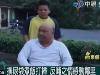 就讀初一的邱文山見父親每日辛苦開車賺錢,總是在父親出門前將他抱上出租車,平日也照顧父親的生活起居,包括洗澡、換藥、清糞便等,他的孝心感動地方人士。13日獲臺灣慈濟基金會頒發孝悌獎。對此,邱文山表示“爸爸沒有腿,我就是爸爸的雙腳,做他的靠山”,而余成平也欣慰地表示“文山是上帝賜予他的天使”,父子親情溢于言表。(中國臺灣網 劉海偉)