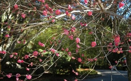 中國臺(tái)灣網(wǎng)12月21日消息 據(jù)臺(tái)灣《聯(lián)合報(bào)》報(bào)道,臺(tái)灣楓葉剛紅,冬至還沒到,可臺(tái)中武陵農(nóng)場的紅梅花竟然開了,武陵路旁10余株梅樹均見紅花悄悄上枝頭,提早揭開賞梅季。