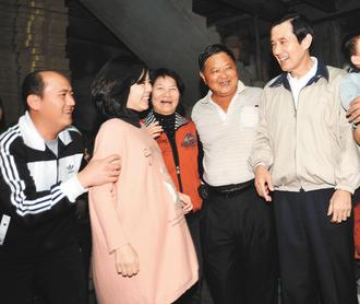 馬英九昨晚前往臺中葡萄農詹德森家作客,詹家二女兒快生了,堅持看到馬英九才要去生小孩,讓馬很感動。(圖片來源:臺灣《聯合報》)