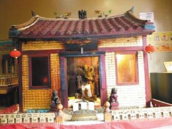 這間不大的“麻將廟”,設在臺南鹽水大眾廟內(nèi),寬90厘米、高僅170厘米,相當迷你,出自當?shù)貜氖陆ㄖぷ鞯呐隋\山之手,當初純粹是突發(fā)奇想,沒想到竟成了鹽水大眾廟的特色。每年春節(jié)前后,信眾紛紛來此祭拜供奉的武財神趙公明,希望來年財運亨通。(中國臺灣網(wǎng) 李迪)