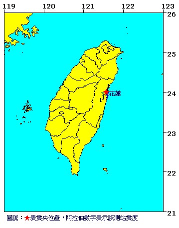中國臺灣網2月9日消息 據臺灣媒體報道,今天上午8時32分,花蓮市發生里氏規模3.4級的地震,震源深度8.8公里,花蓮感受最明顯,花蓮縣吉安有3級震度,花蓮市為2級,太魯閣為1級。(中國臺灣網 劉海偉)