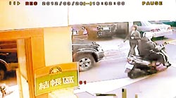 臺(tái)北市南京東路三段的臺(tái)灣中小企銀昨天下午4點(diǎn)多發(fā)生搶案,一名男子藏匿在樓梯間,開槍打傷保全人員后,搶走1千多萬現(xiàn)金,獨(dú)自騎乘機(jī)車逃逸。店家監(jiān)視器畫面中,疑似嫌犯穿深色衣服騎機(jī)車逃離現(xiàn)場,機(jī)車腳踏板處可見塞滿裝錢提袋。(圖片來源:臺(tái)灣《中國時(shí)報(bào)》)