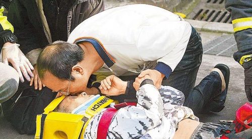 中國臺灣網3月31日消息 據臺灣媒體報道,新北巿一名七旬老翁疑因久病厭世,昨凌晨趁家人熟睡時,從住處14樓跳樓輕生,撞破1樓的平房屋頂,卡在洞內當場死亡。死者兒媳清晨發現父親失蹤后報警找人,接獲通知找到父親遺體,兒子難過得跪地痛哭,俯身親吻父親額頭道別,場面令人鼻酸。 (中國臺灣網 李迪)