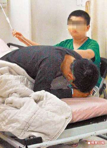 何姓男子的小兒子在醫院內,像個小大人似的照顧已清醒的父親。 圖片來源:臺灣媒體