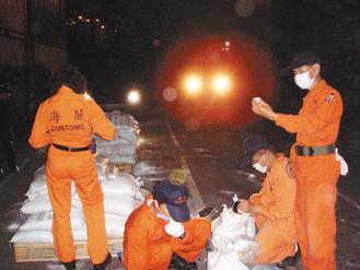 海關(guān)工作辛苦,職司關(guān)稅稽征、查緝走私,常在碼頭貨柜、堆高機間跑來跑去。圖為海關(guān)人員夜間查獲K他命等走私毒品。(圖片來源:臺灣《聯(lián)合報》)