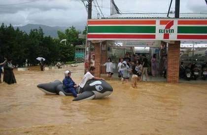 中國(guó)臺(tái)灣網(wǎng)6月12日消息 據(jù)臺(tái)灣媒體報(bào)道,今天臺(tái)灣籠罩在暴雨?duì)顟B(tài)中,就有民眾干脆騎乘游泳用“鯨魚(yú)”汽船,在街上“游”進(jìn)便利超商,成為淹水中苦中作樂(lè)一景。