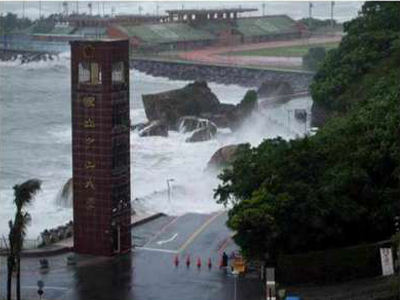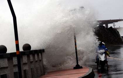 “泰利”帶來的大浪沖擊防護堤。圖片來自臺媒