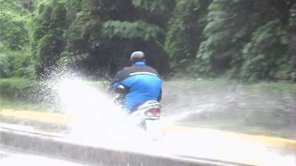 高雄“中山大學”校園門口巨浪沖上路面。圖片來自臺媒
