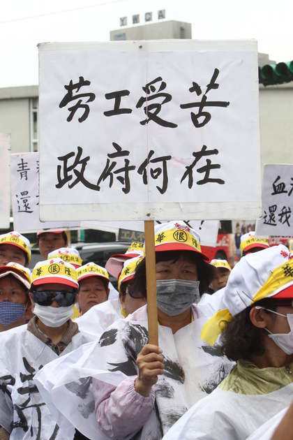 臺灣華隆紡織廠員工臺北抗議現場。圖片來自臺媒