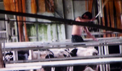業(yè)者用塑膠棒大力揮打牛。圖片來(lái)自臺(tái)媒