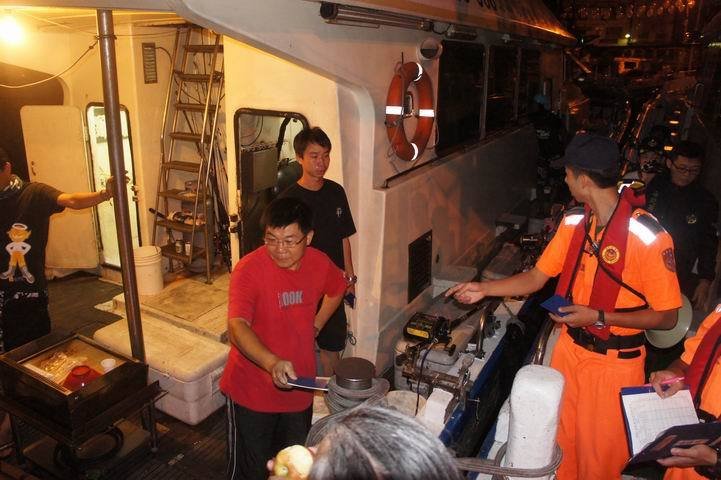 圖為7月3日晚,臺灣“海巡署”的長官正在進行安檢。