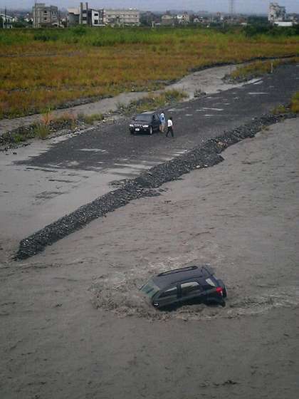 臺宜蘭縣府人員防臺風視察 險遭沖走困沙洲(圖)