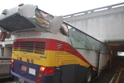 司機表示,他看快車道上的限高標志4.6米,誤以為機車道也是4.6米,他車高3.8米應該可以過,沒想到就直接撞上,車速大約40公里。(中國臺灣網 焦源源)