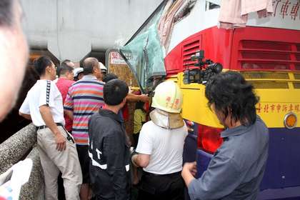 中國臺灣網8月24日消息 據臺灣媒體報道,一輛滿載33人廣州陸客游覽車,今下午行經臺灣嘉義市世賢路(四線道)時,誤闖限高2.4米的機車道,車頂撞上路橋損毀,造成28人受傷送醫。