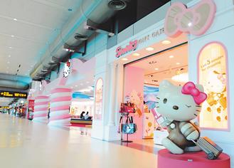 據(jù)臺灣《聯(lián)合報》報道,臺灣桃園機場靠著Hello Kitty入選全球十大友善機場。桃園機場除了有Hello Kitty主題候機樓、游樂區(qū),也有Hello Kitty育嬰室和電話亭,甚至有Hello Kitty太陽餅、鳳梨酥和巧克力等限量商品。