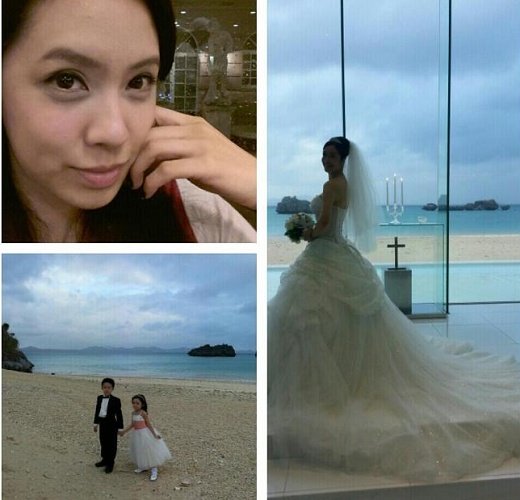 臺(tái)灣女藝人洪百榕(左上)赴沖繩參加顧婕(右)的婚禮。(圖片截取自洪百榕的微博)