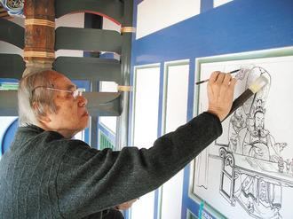最后作畫身影 彩繪大師陳壽彝今年初為頂新集團(tuán)彰化祖厝彩繪留下的身影,也是他留在民間最后的創(chuàng)作。圖片來(lái)源:臺(tái)灣《聯(lián)合報(bào)》