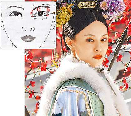 飾演甄嬛的孫儷(右圖)擁有電眼,成為整形范本。醫師建議眉、眼距離比例,自眼頭至眼尾為2比1比3(上圖)。圖片來自臺媒