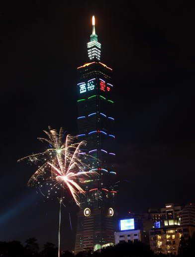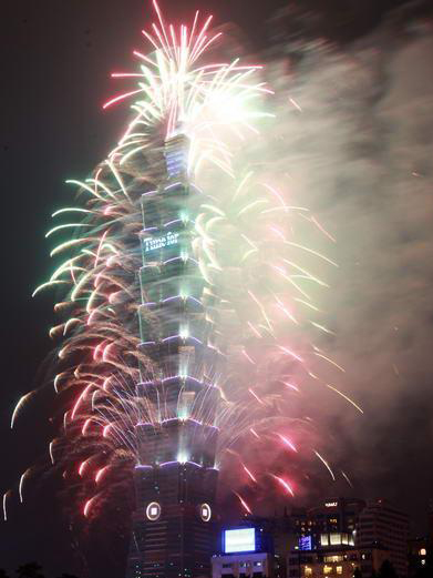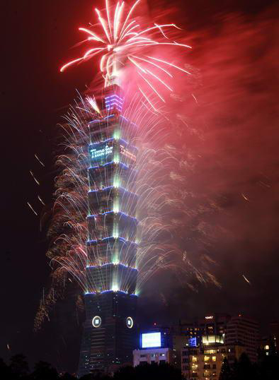 和去年一樣長達(dá)188秒的2013臺(tái)北101跨年煙火秀精彩登場,估計(jì)有85萬人到場觀賞。圖片來自臺(tái)灣今日新聞網(wǎng)