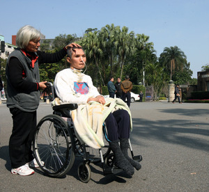張振聲父母日前帶他重返臺(tái)大,希望臺(tái)大能承諾負(fù)起長(zhǎng)期照護(hù)的責(zé)任。圖片來(lái)自臺(tái)灣媒體