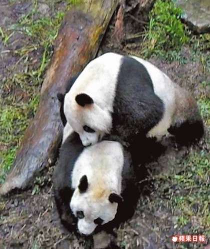 團(tuán)團(tuán)(上)、圓圓(下)昨交流熱絡(luò),不時(shí)出現(xiàn)咬背挑逗的行為。(圖片來(lái)自臺(tái)媒)