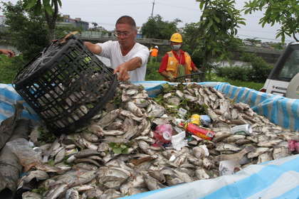 大量死魚被打撈運走。(圖來自臺媒)