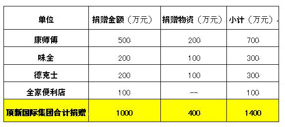 頂新國際集團支援震災投入一覽。(數(shù)據(jù)由頂新國際集團官方提供)