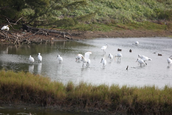 陳仕泓說,珍貴的黑面琵鷺全世界的紀(jì)錄數(shù)量只有2500只左右。在前一年10月時,會從棲息地日韓、山東等地南返臺灣、香港、新加坡等地渡冬。臺北關(guān)渡公園只是在黑面琵鷺的南北返的飛行航線上,這次遇到大雨阻擋,才讓關(guān)渡濕地可以見到數(shù)量如此龐大的嬌客暫時棲息。而這30只黑面琵鷺,根據(jù)臺北鳥會資深活動組義工觀察,幾乎都是亞成鳥,也就是年幼琵鷺,不僅都沒有繁殖羽,更可以在嘴巴前端看到略帶黃色的特征。盡管前幾天,黑面琵鷺暫時停留,來不及吸引大批賞鳥迷,不過關(guān)渡公園已經(jīng)將它們的暫時停留過程紀(jì)錄下來。(中國臺灣網(wǎng) 周劍)