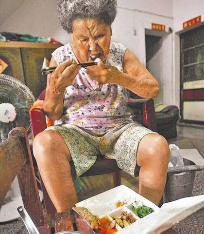 老人吞酸臭便當(圖片來自臺媒)