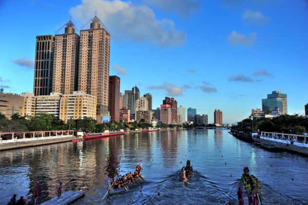 今年高雄市的端午龍舟賽依循以往在愛河水域以及林園區的中蕓漁港兩地同時舉行。今年愛河龍舟賽參賽隊伍更創新高,共134支隊伍、超過3000人參賽。參賽隊伍聚集在河畔整隊歡呼,展現旺盛氣勢,而三度組隊來臺參賽的姐妹城市西雅圖,也以一首《高山青》為隊員壯聲勢。