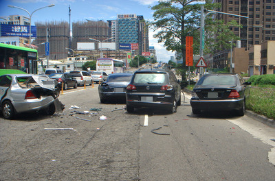 警方調查指出,老翁當時開車行經臺中市臺灣大道與環中路口的交叉路口,一時右腳麻木,不能動彈,于是急中生智,想從兩排車子當中穿過去,但無奈空隙太小,先撞上1輛黑色奔馳車,安全氣囊打開后胸部受傷,之后車輛失控,又連撞多車。警方調查后發現,被撞的車輛包括一輛黑色奔馳車、一輛銀色奔馳車、一輛紅色寶馬、一輛臺塑轎車及一輛保時捷。
