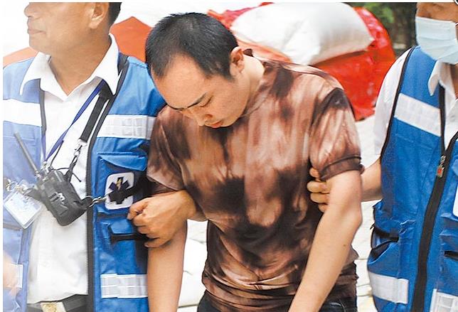 李明哲去年7月曾到死者梁雪梅居住的大樓鬧自殺,被警方帶離。(圖片來自臺媒)