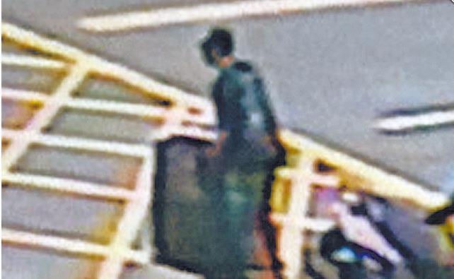 昨午12時許,李明哲推著裝尸行李箱,從死者住處離開過馬路時,被監視器拍下。(圖片來自臺媒)