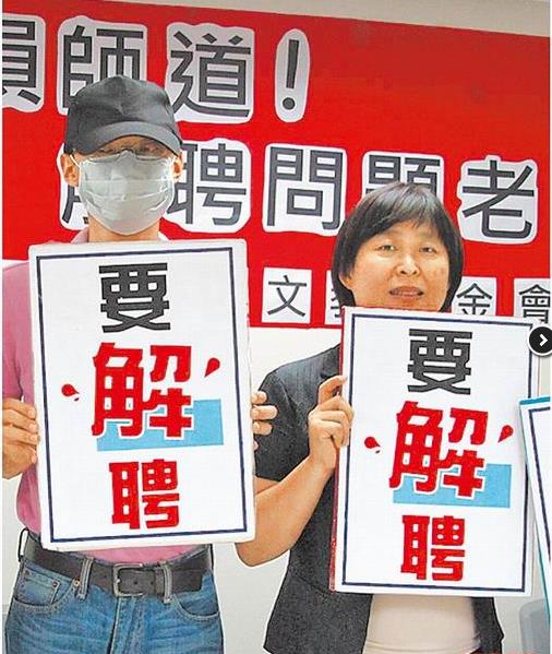 人本昨陪同學生家長(左)出面,指控廖師不當管教,要求立即解聘。(圖片來自臺媒)