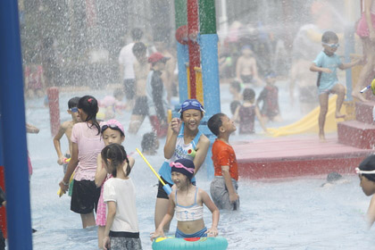 臺北市中午出現今夏最高溫,臺北自來水源區擠滿戲水民眾。(圖片取自臺灣媒體)