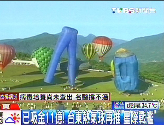 中國臺(tái)灣網(wǎng)8月5日消息 據(jù)臺(tái)灣TVBS電視臺(tái)報(bào)道,臺(tái)東熱氣球嘉年華,活動(dòng)一波接一波,從6月到現(xiàn)在已經(jīng)吸引70萬人次來造訪,帶來11億(新臺(tái)幣,下同)觀光財(cái),主辦單位今天又推了新的熱氣球,希望可以突破去年的88萬人次。