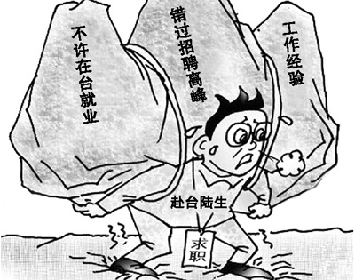 無法留臺工作,一些陸生只好打道回府,將重點轉移到在大陸的臺資企業爭取工作機會。無奈一般臺商的人力資源部門又傾向于利用大陸的人資渠道去尋覓人才,對于赴臺陸生則并不重視,使得這些陸生在臺灣找大陸工作時常碰壁。至于臺灣本土公司,則幾乎都傾向于招臺灣本土學生。如此一來,不少在臺就學的陸生發出“在夾縫中求生存”、“或許,我們會成為犧牲品”的沉重感慨。