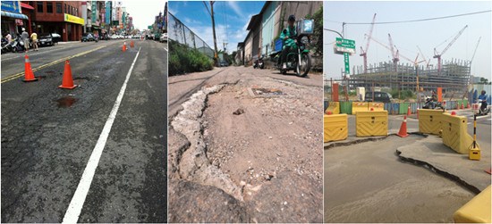 雨已經停了好幾天,但各縣市抱怨路不平、害輪胎破害人跌傷的案件頻傳。桃園縣議員李家興則說,桃園縣馬路不平的程度,已經出名,外縣市坐車或開車的民眾,只要發現車子開始巔簸就知道“桃園縣到了”。