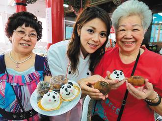 阿公阿嬤做大熊貓 “圓仔”月餅 舍不得吃。臺灣《聯合報》圖