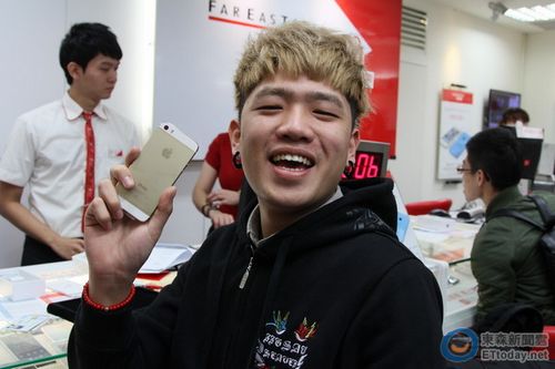 據(jù)臺(tái)灣東森電視臺(tái)網(wǎng)站報(bào)道,蘋果公司宣布 iPhone 5s、iPhone 5c 于10月25在臺(tái)開賣,臺(tái)灣各家電信商、經(jīng)銷商各自在最高限度祭出優(yōu)惠搶客,不過由于各家營業(yè)時(shí)間的關(guān)系,去年(2012)年底設(shè)立,上午7點(diǎn)開店的遠(yuǎn)傳臺(tái)北車站門市成為臺(tái)灣首間開幕門市,民眾最早從凌晨2點(diǎn)就到現(xiàn)場(chǎng)排隊(duì),不過全部都是沖著金色 iPhone 5s。