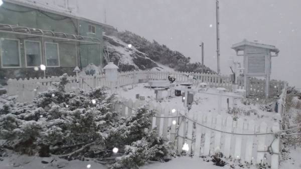 根據(jù)玉山北峰氣象站資料,玉山北峰積雪已經達到6公分。(圖來自臺媒)