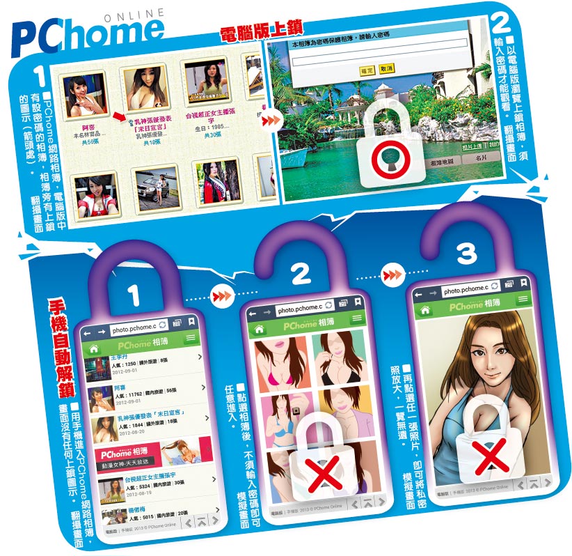 臺灣知名網站PChome網絡相簿出包,計算機版上鎖相簿須靠密碼打開,手機版卻可免密碼開啟。(臺媒圖)