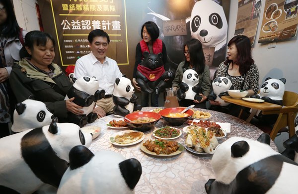 中國臺灣網(wǎng)4月24日消息 據(jù)臺灣《中國時(shí)報(bào)》報(bào)道,1600只紙雕熊貓?jiān)谂_北展出以來,辛苦擔(dān)任保育大使,昨晚臺北市長郝龍斌特別以“千歲宴”設(shè)席款待,慰勞這些萌到爆表的熊貴賓大軍,也邀雙熊“逛”寧夏夜市,為即將巡回全臺的黑白雙熊餞行。