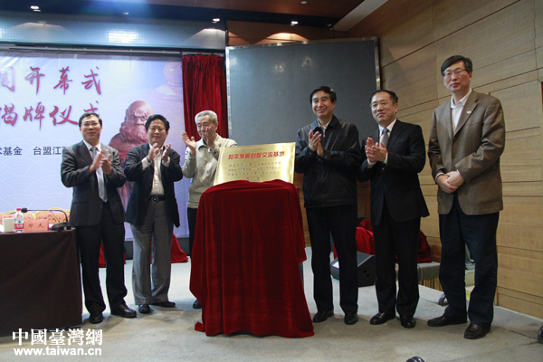 臺盟中央副主席黃志賢與參會嘉賓共同為“和平發展創新交流基地” 揭牌。(中國臺灣網 王怡然 攝)