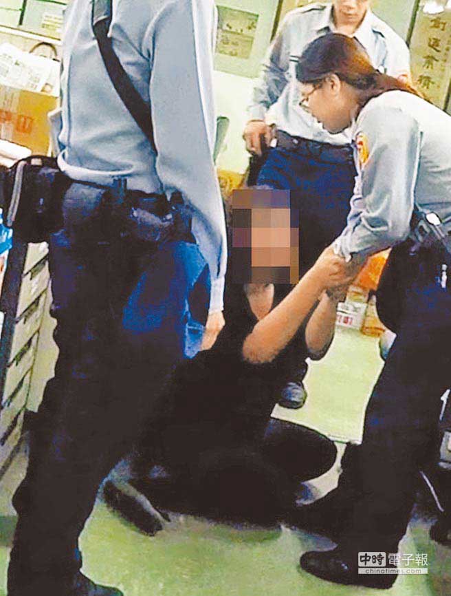 陳姓婦人偷文具,警察前跪求原諒。(圖片來源:臺灣中時電子報)