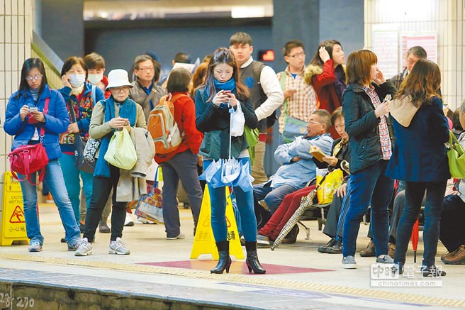 臺(tái)鐵桃園到鶯歌段23日早晨6時(shí)許發(fā)生電車線斷落意外,南下僅行駛到鶯歌,北上到內(nèi)壢,對(duì)通勤族造成極大影響;事發(fā)后臺(tái)北車站南下月臺(tái)擠滿等待搭車的旅客。(圖片來源:臺(tái)灣中時(shí)電子報(bào) 黃世麒攝)