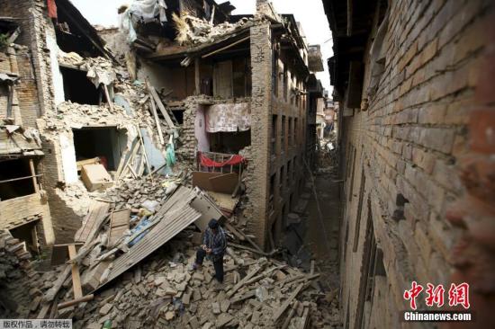 4月25日,尼泊爾發生里氏8.1級地震,首都加德滿都大量房屋倒塌,部分道路堵塞中斷。圖為尼泊爾民眾在廢墟中尋找親人。