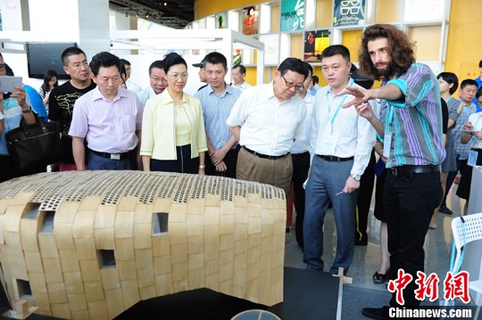 圖為陳德銘會(huì)長(zhǎng)饒有興致參觀西班牙創(chuàng)客設(shè)計(jì)的概念屋。 中新社發(fā) 陳文 攝