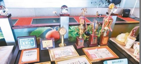 施明瓊阿公秀出慢跑得獎的獎杯與獎狀。(來源:臺灣《聯合報》)