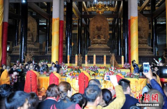 4月12日,僧眾舉行儀式迎接佛骨舍利回石象寺。當日,成都蒲江縣石象寺舉行法會,恭請釋迦摩尼佛佛骨真身舍利回寺,該舍利是從臺灣慈法禪寺恭請回,將在石象寺永久供奉。佛陀舍利是指佛陀火化后的遺物,極為罕有。 中新社記者 劉忠俊 攝
